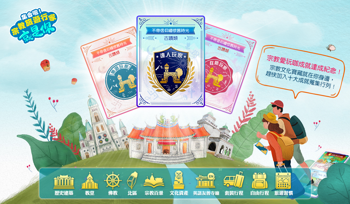 喜愛宗教文化的旅行家們,請點選入門推薦或十大成就類別景點,或是自行挑選行程,即刻出發。